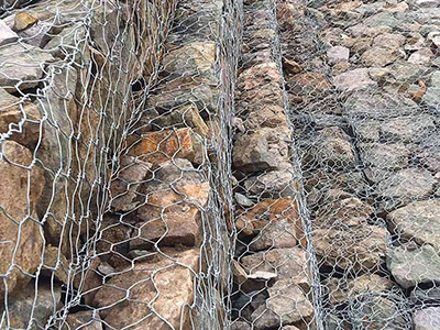格宾笼是由金属线材编织的角形网(六角网)制成的网箱。石笼网由高抗腐蚀、高强度、具有延展性的低碳钢丝或者包覆PVC的以上钢丝使用机械编织而成,使用该网制作而成的箱型结构就是石笼。
